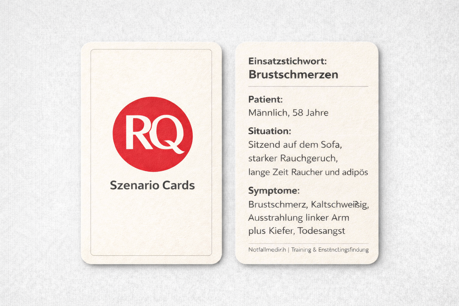 Die RQ Szenario Cards sind ein praxisnahes Trainingskartenset für Rettungsdienst, Feuerwehr und medizinische Ausbildung.